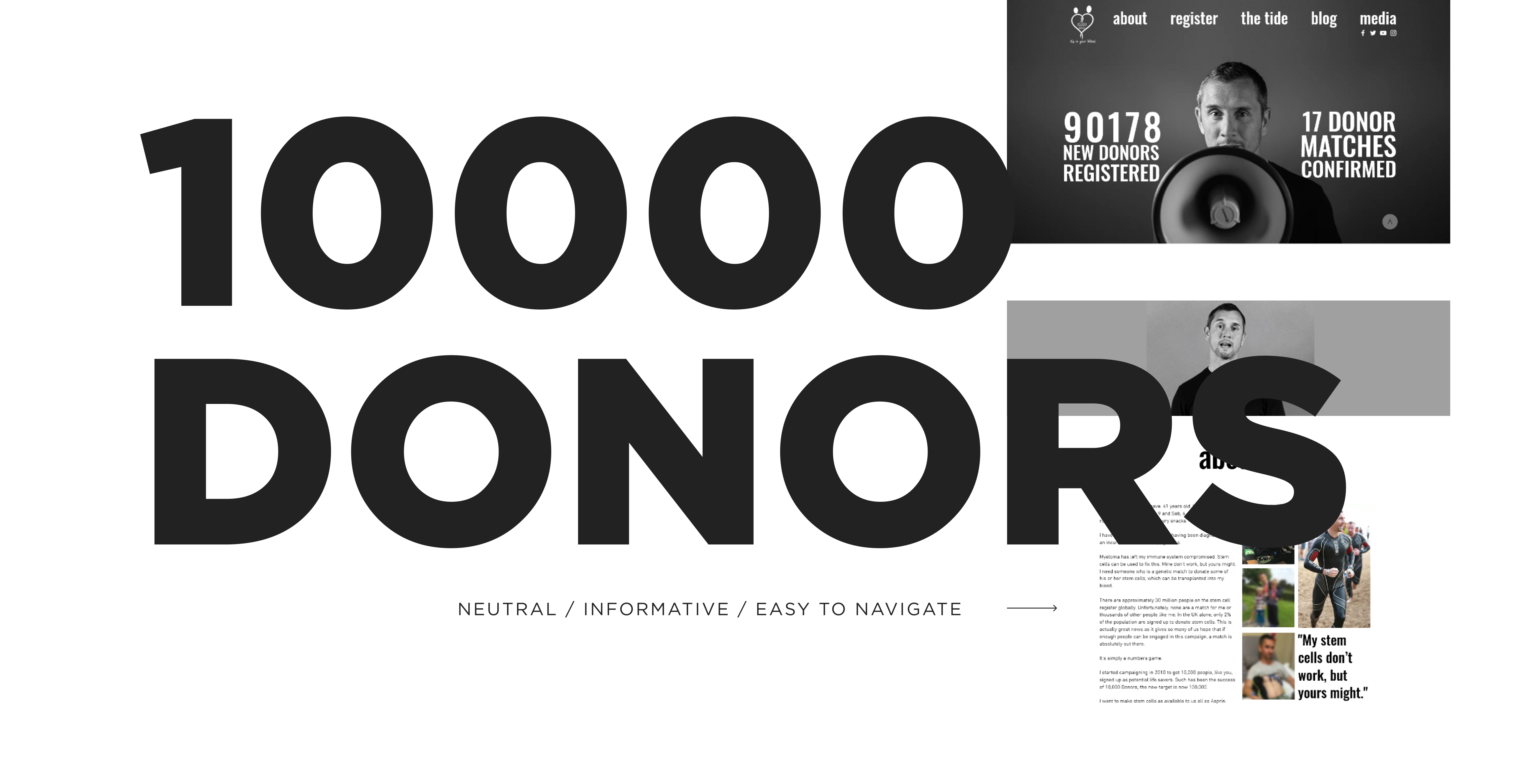 10,000 Donors is run by Pete McCleave, and it’s got a really simple mission – to get more people to join the stem cell registry. More people joining = more lives saved from blood cancer. From a user’s perspective, it’s easy – you sign up, get a swab in the post, swab the inside of your mouth and free-post it. Super simple.