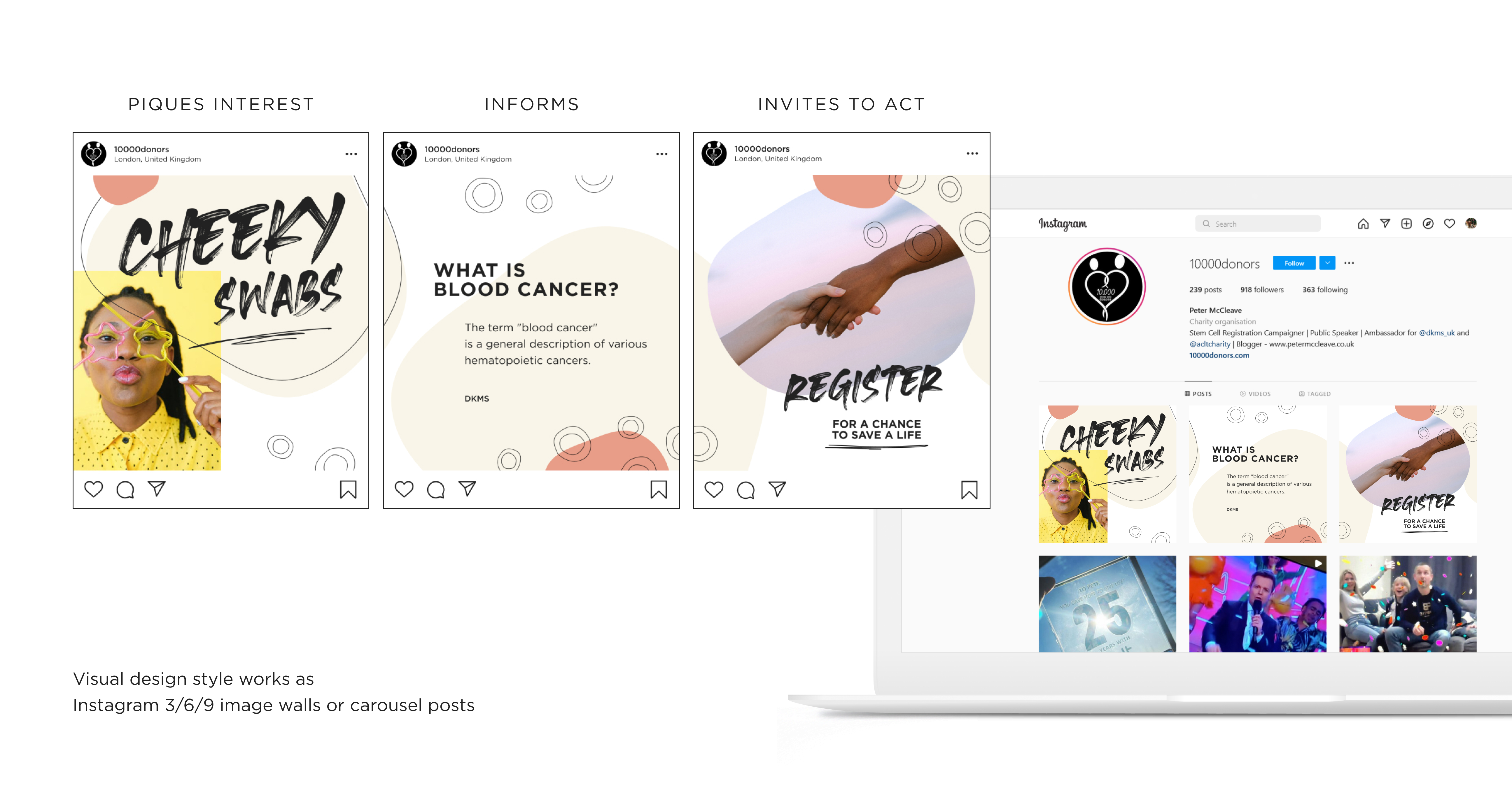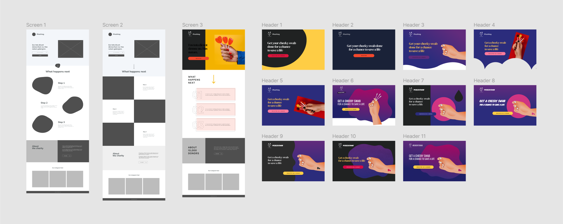 - I've created a mini-campaign theme/idea to convince 16 to 25-year-olds to join 10,000 Donors and the stem cell registry. Channels, messaging, look and feel were all up for grabs. The freedom to creatively explore the ‘design and theme’ of this campaign gave me many different ideas to experiment with. At the same time, I've looked at a couple of complimenting social tiles/concepts (Instagram and TikTok) to get this younger audience interested in the cause, which ultimately would lead to their engagement with the campaign.